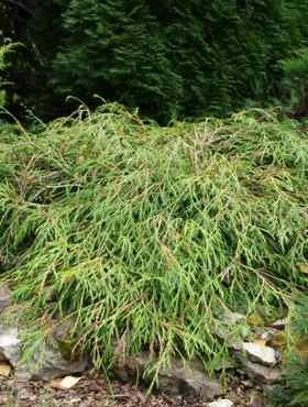 Forma szerokostożkowa, nieregularna, pędy nitkowate, spłaszczone, barwa ciemnozielona, wzrost raczej wolny.